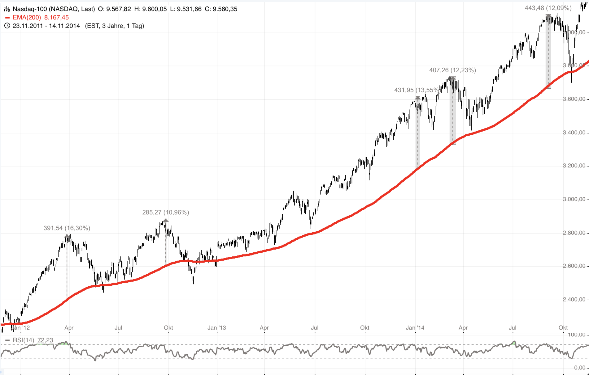 alle NASDAQ100 Überhitzungen zw. 2012 und 2015