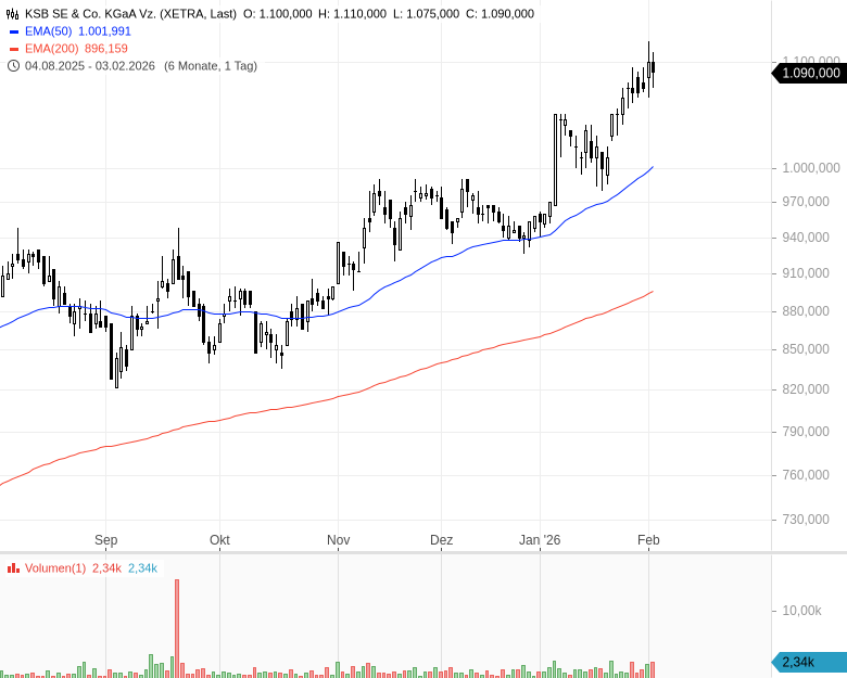 - KSB SE & Co. KGaA Vz.Kursstand: 1.090,000 € (XETRA) - Zum Zeitpunkt der VeröffentlichungVerkaufenKaufen
