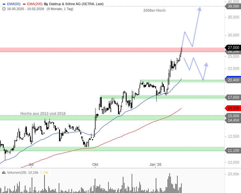 - Daldrup & Söhne AGKursstand: 27,000 € (XETRA) - Zum Zeitpunkt der VeröffentlichungVerkaufenKaufen