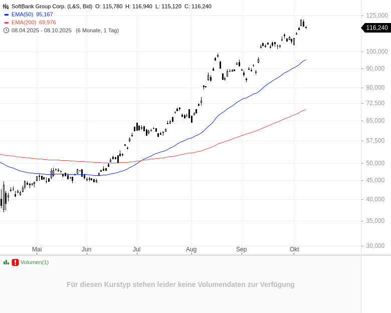 - SoftBank Group Corp.Kursstand: 115,780 € (L&S) - Zum Zeitpunkt der VeröffentlichungVerkaufenKaufen