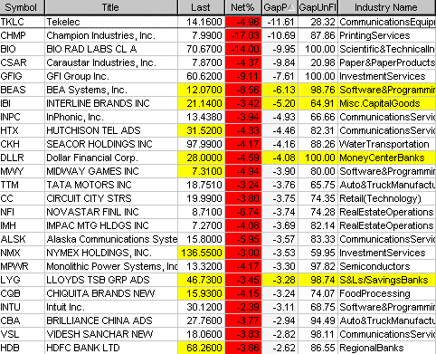 Nachfolgend eine Auflistung einiger Aktien, die heute mit einem Gap Down eröffnet haben.