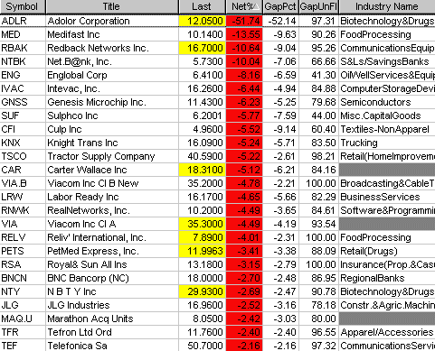 Nachfolgend eine Auflistung einiger Aktien, die heute mit einem Gap Down eröffnet haben.