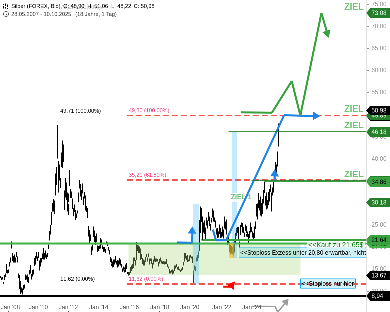 SILBER-ANSAGE: Über 50 USD gibt es das Signal für das Ziel 73 USD!