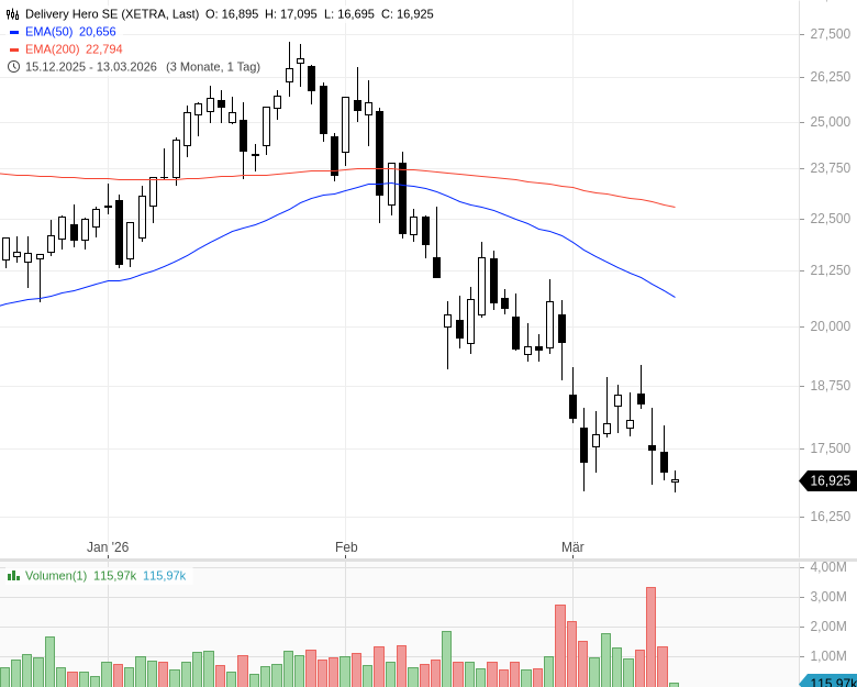 - Delivery Hero SE - WKN: A2E4K4 - ISIN: DE000A2E4K43 - Kurs: 17,005 € (XETRA)