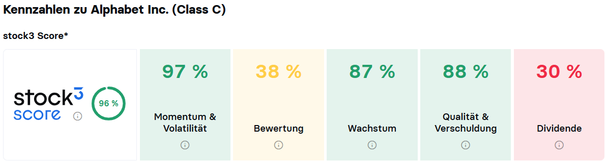 Im Trendfolge- und Momentum-Depot von stock3 Select und stock3 Ultimate ist seit November ein Long-Hebelprodukt auf die Alphabet-C-Aktie enthalten. Die Position befindet sich aktuell rund 33 % im Plus.