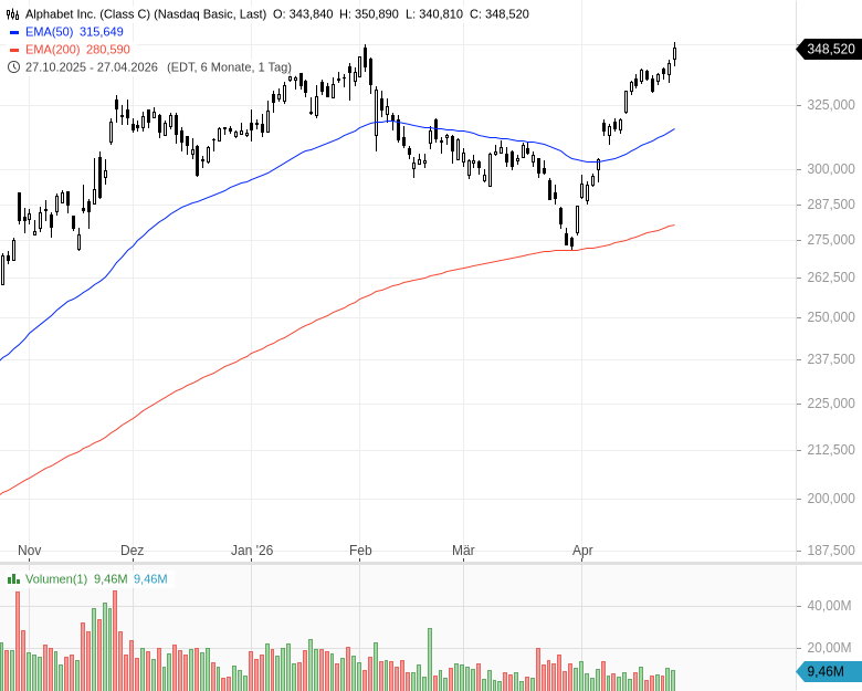 - Alphabet Inc. (Class A) - WKN: A14Y6F - ISIN: US02079K3059 - Kurs: 350,340 $ (Nasdaq)