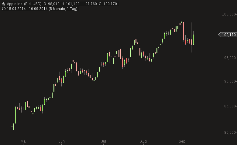- Apple Inc. - WKN: 865985 - ISIN: US0378331005 - Kurs: 100,23 $ (NASDAQ)