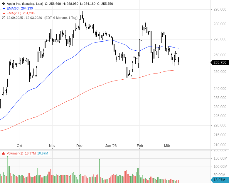 - Apple Inc. - WKN: 865985 - ISIN: US0378331005 - Kurs: 255,750 $ (Nasdaq)