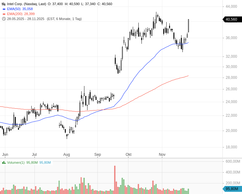 Fazit: Die Intel-Aktie gewann gestern rund 10 %. Entscheidend wird nun sein, ob der Konzern den Beweis erbringt, dass seine Fertigungstechnologie wieder zur Spitzengruppe zählt. Gelingt dieser Nachweis, dürfte auch der Weg zu Apple erneut offenstehen. Für Intel wäre das ein längst erhoffter Befreiungsschlag.