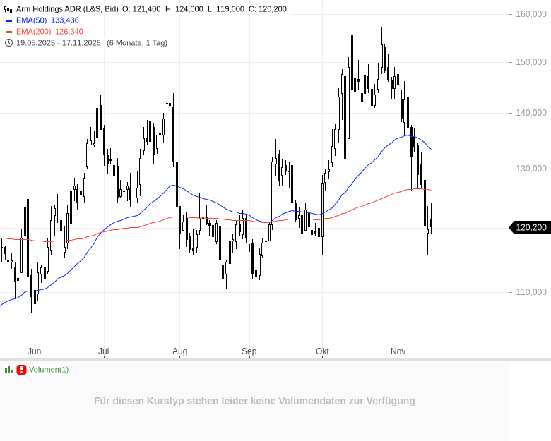 - Arm Holdings ADRKursstand: 140,260 $ (Nasdaq) - Zum Zeitpunkt der VeröffentlichungVerkaufenKaufen
