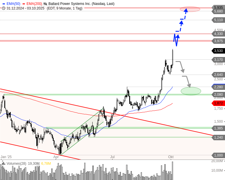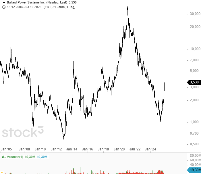 - Ballard Power Systems Inc.Kursstand: 3,530 $ (Nasdaq) - Zum Zeitpunkt der VeröffentlichungVerkaufenKaufen
