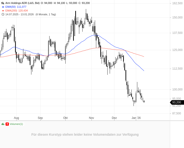 - Arm Holdings ADRKursstand: 111,140 $ (Nasdaq) - Zum Zeitpunkt der VeröffentlichungVerkaufenKaufen