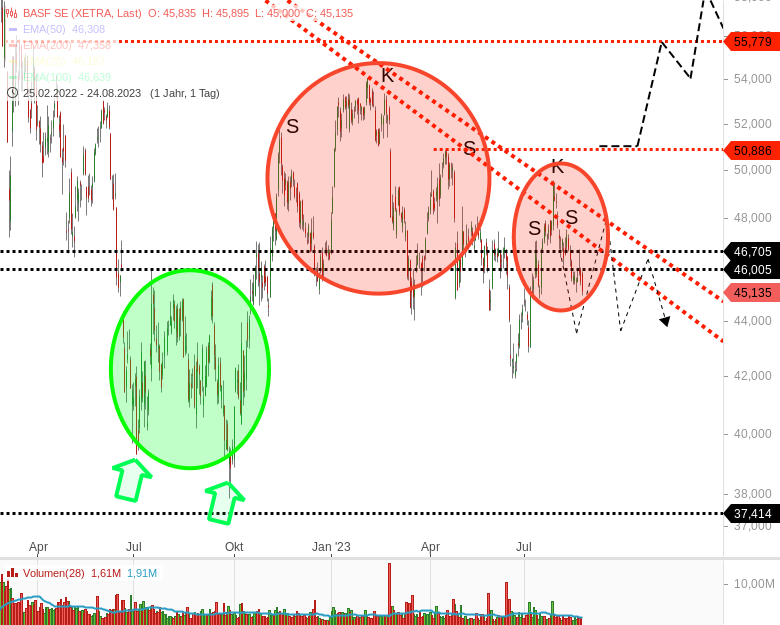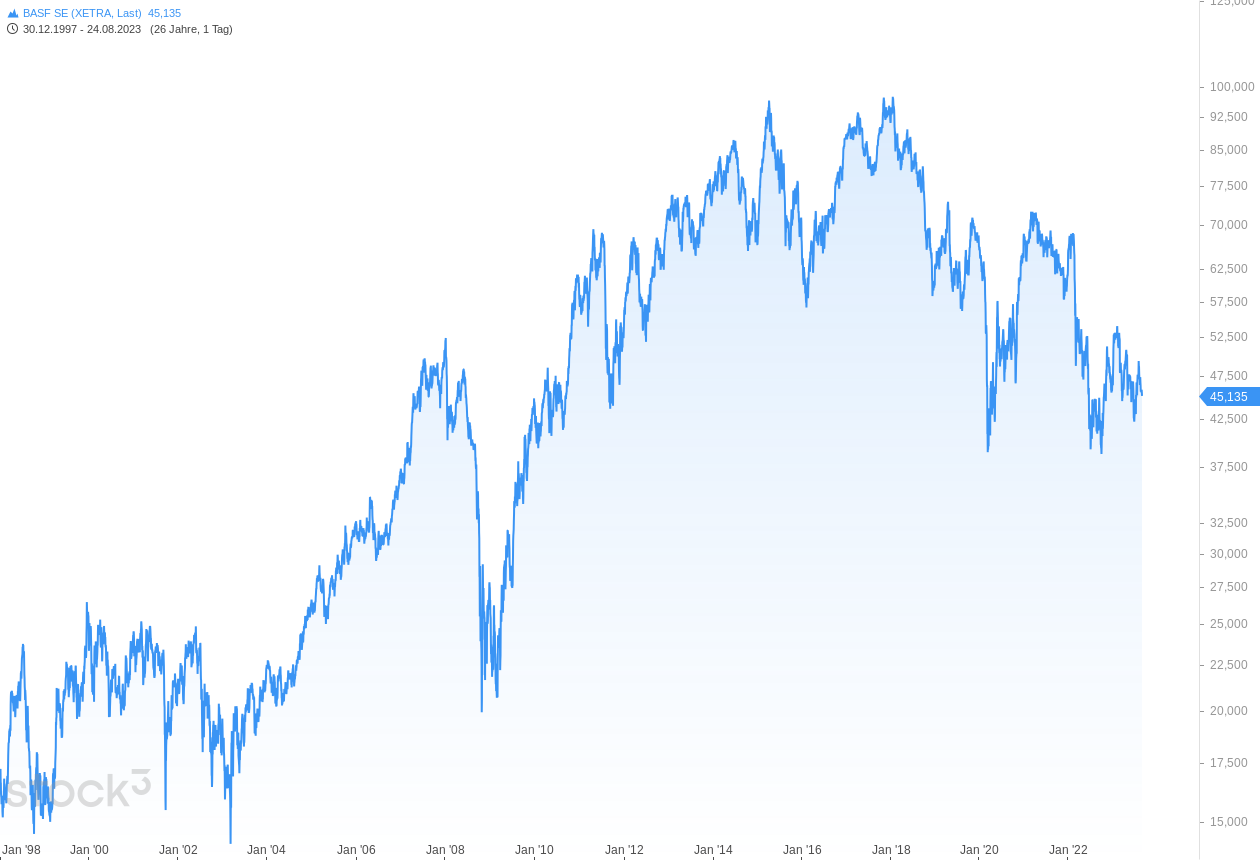 - BASF SE - WKN: BASF11 - ISIN: DE000BASF111 - Kurs: 45,135 € (XETRA)