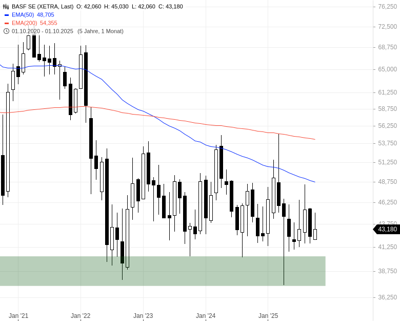 - BASF SE - WKN: BASF11 - ISIN: DE000BASF111 - Kurs: 43,180 € (XETRA)