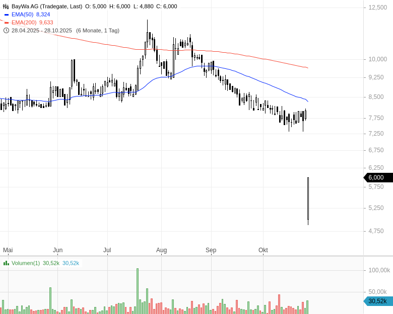 Zwar eröffnete die BayWa-Aktie recht tief, hat sich aber intraday auf 6 EUR erholt. Man kann nur spekulieren, was dahintersteckt. Ich würde fast behaupten: Da haben wohl einige einfach mal reingekauft, ohne sich die Hintergründe genau anzuschauen.