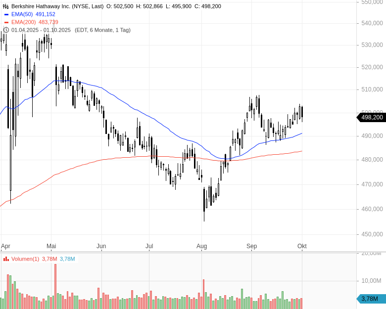 - Berkshire Hathaway Inc.Kursstand: 498,200 $ (NYSE) - Zum Zeitpunkt der VeröffentlichungVerkaufenKaufen