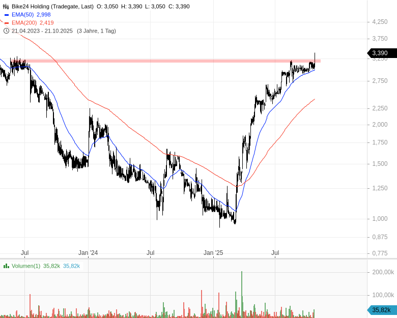 - Bike24 Holding - WKN: A3CQ7F - ISIN: DE000A3CQ7F4 - Kurs: 3,330 € (XETRA)