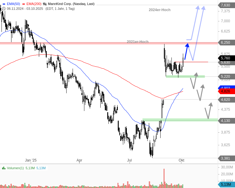 - MannKind Corp. - WKN: A2DMZL - ISIN: US56400P7069 - Kurs: 5,760 $ (Nasdaq)