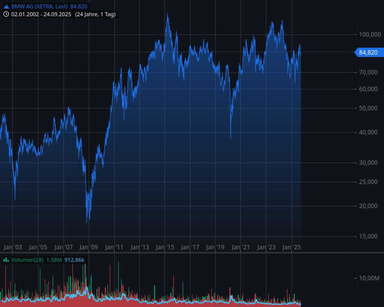 Quartalszahlen: BMW verzeichnete ein Umsatzminus von rund 8% auf 33,9 Mrd. Euro und einen Ergebnisrückgang vor Steuern um 32% auf 2,6 Mrd. Euro. Trotz dieser Belastungen bestätigt der Konzern seine Jahresziele mit einem anvisierten EBIT von 5-7% und verteidigt damit seine robuste Position. Hauptproblem ist die nachlassende Nachfrage in China sowie der Druck durch US-Zölle. Dennoch hält BMW an seiner Strategie der "Neuen Klasse" fest, die ab September 2025 für neue Produkte und Innovationsschub sorgen soll. Dieser Technologiewechsel erhöht die langfristigen Wachstumschancen. Die Dividendenrendite liegt bei rund 4,5%, was für einen Autohersteller attraktiv ist. Das KGV bewegt sich mit ca. 8-9 auf einem moderaten Niveau.