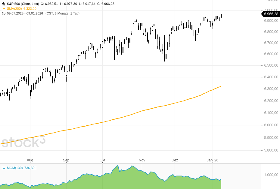 - S&P 500 - WKN: A0AET0 - ISIN: US78378X1072 - Kurs: 6.966,28 Pkt (Cboe)