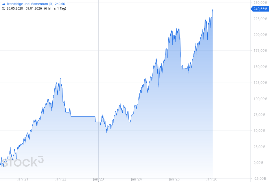 Seit Start im Mai 2020 befindet sich das Trendfolge- und Momentum-Depot (das früher "9-Billionen-Dollar-Depot" hieß) inzwischen mehr als 240 % im Plus.