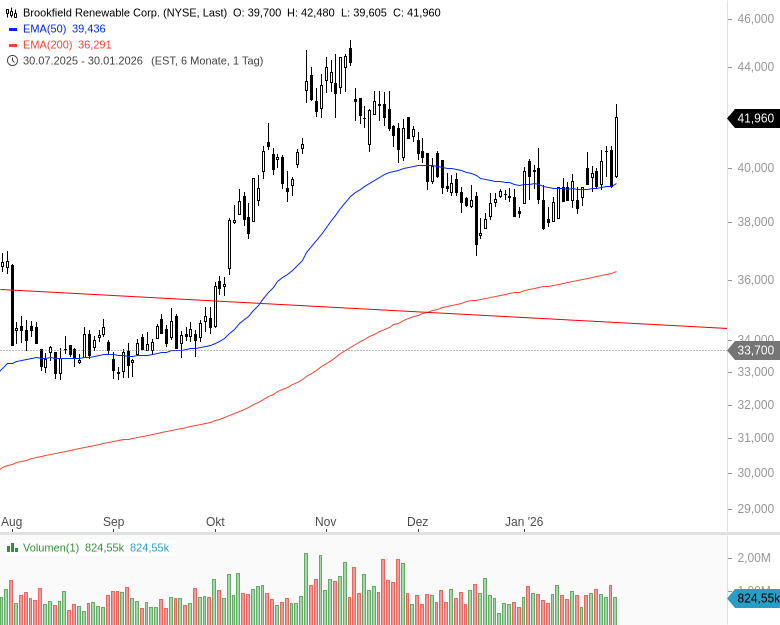 - Brookfield Renewable Corp.Kursstand: 41,960 $ (NYSE) - Zum Zeitpunkt der VeröffentlichungVerkaufenKaufen