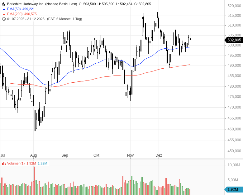 - Berkshire Hathaway Inc.Kursstand: 502,650 $ (NYSE) - Zum Zeitpunkt der VeröffentlichungVerkaufenKaufen