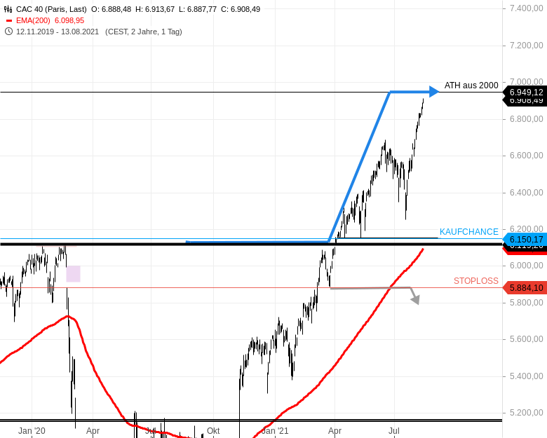 CAC40 Ausbruch über 6110. Ziel: 6950
