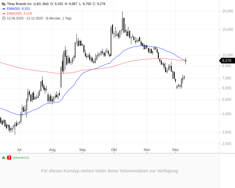 - Tilray Brands Inc. - WKN: A41VMJ - ISIN: US88688T2096 - Kurs: 9,459 € (XETRA)