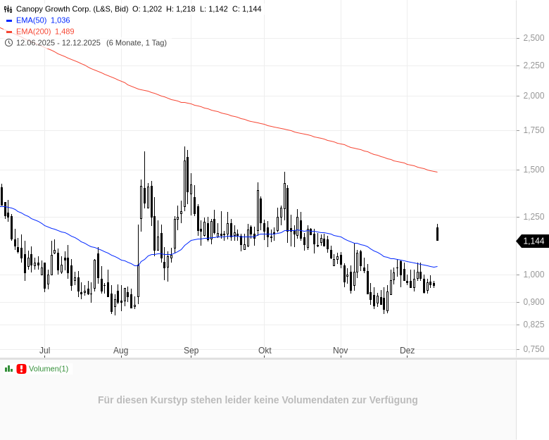 - Canopy Growth Corp.Kursstand: 1,130 $ (Nasdaq) - Zum Zeitpunkt der VeröffentlichungVerkaufenKaufen