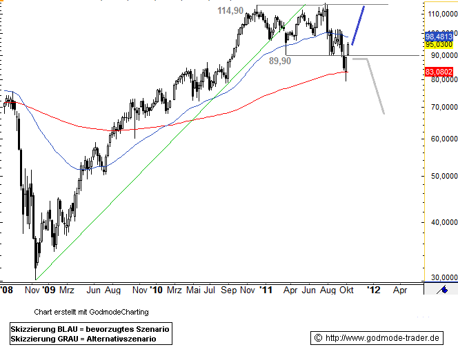 Sollte der Wert allerdings erneut unter 89,90 Euro abfallen, dürften die Bullen keine Kraft mehr haben, um sich zu wehren. Abgaben gen 69,49 Euro wären dann zu erwarten.