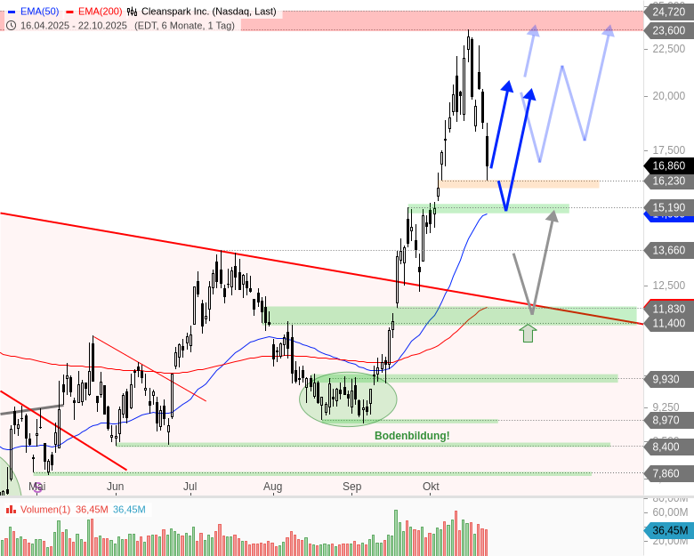 - Cleanspark Inc.Kursstand: 16,860 $ (Nasdaq) - Zum Zeitpunkt der VeröffentlichungVerkaufenKaufen