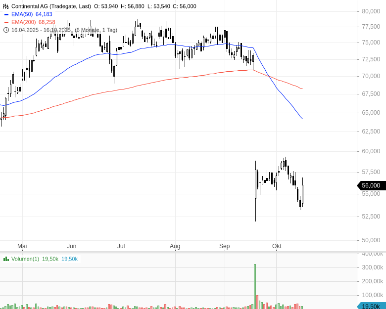 Positiv reagierten auch Analysten auf die Eckdaten. Die US-Bank JPMorgan bekräftigte ihre Einstufung für die Continental-Aktie mit "Overweight“ und einem Kursziel von 70 EUR. "Conti hat sowohl die eigenen Erwartungen als auch jene des Marktes deutlich übertroffen“, schrieb Analyst Akshat Kacker. Für das Jahr 2026 seien die Hannoveraner gut positioniert, so Kacker weiter.