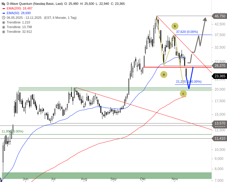 Quantencomputeraktien geraten erneut unter Druck – und D-Wave Quantum bildet da keine Ausnahme. Nach dem Hype folgt nun die Korrektur. Doch der Zielbereich einer potenziellen Gegenbewegung rückt näher.