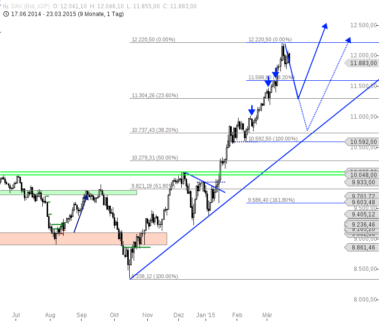 Bei Bestätigung der Umkehrformation würde der DAX in einen korrektiven Trend übergehen.