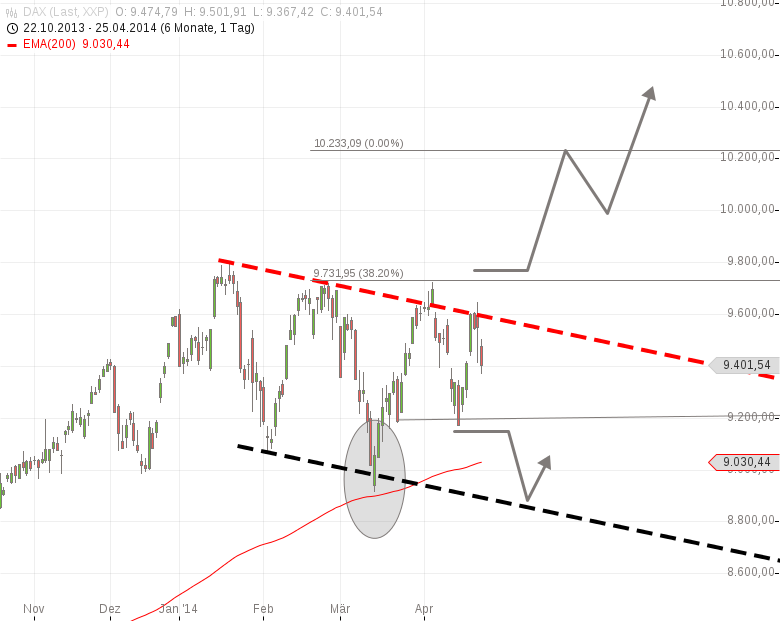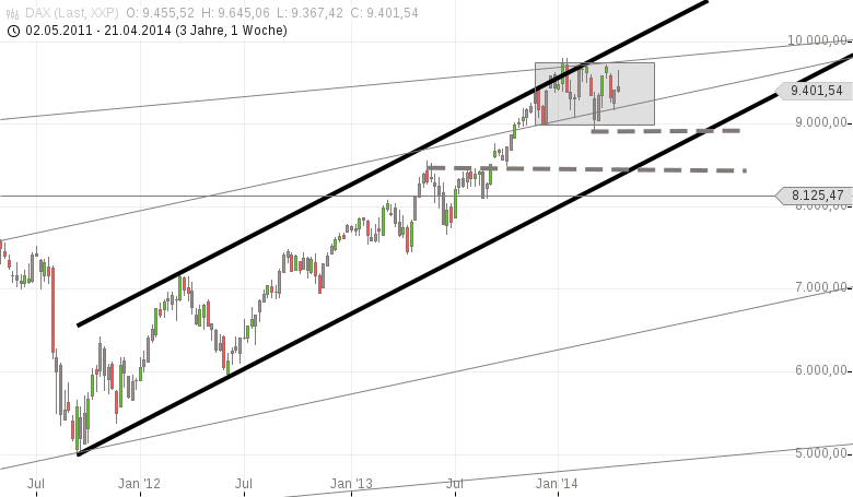 Steigt der DAX hingegen über 9.750 Punkte an, wäre dies bullisch zu werten und eine Anstiegsphase bis 10.500 Punkte würde starten.