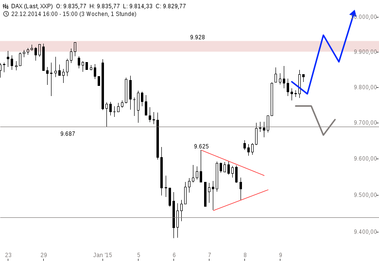 Machen wir es kurz: im DAX läuft der nächste Rallyversuch, nachdem der Index heute früh korrigierte. Damit sollte der DAX idealerweise sein Tagestief gesehen haben und sich heute als auch die nächsten Tage weiter auf in Richtung 9.928 und 10.000 Punkte machen. Die heutigen US Arbeitsmarktdaten haben sich damit charttechnisch gut eingefügt. Sie sind leicht besser als erwartet ausgefallen (252 Tsd. vs. erwarteten 241 Tsd.).