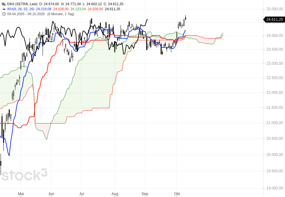 Aus Ichimoku-Sicht liegen im DAX fünf von fünf möglichen bullischen Signalen vor.