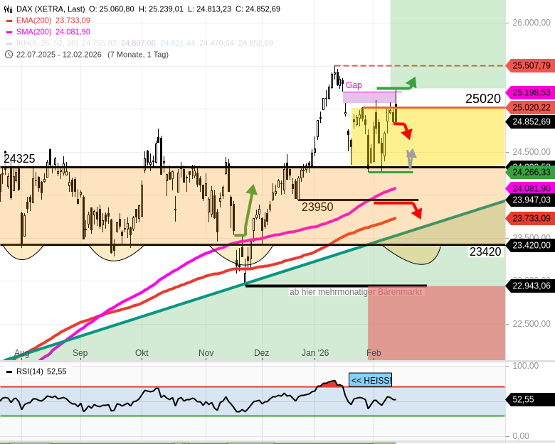 Hier ist so ein Monatsausblick vom 1.2.2026. Darin wird eine brisante Lage beschrieben, auch für den DAX. Es wird auch beschrieben, dass der DAX dennoch bis weit in den Februar hinein ansteigen könnte, steht da wirklich, ist wahr.