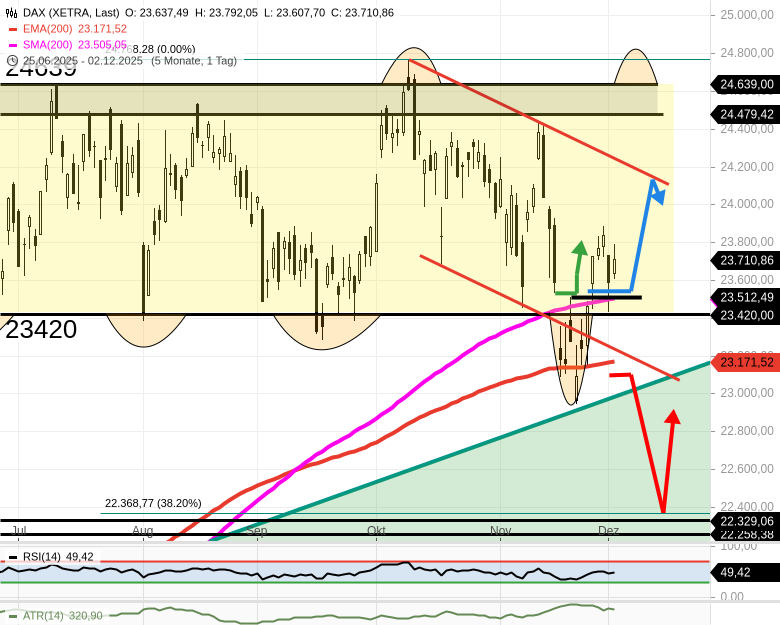 1) Der DAX ist über 23510 stabil und hat mehr Aufwärtschancen als Abwärtsrisiken.