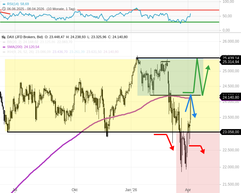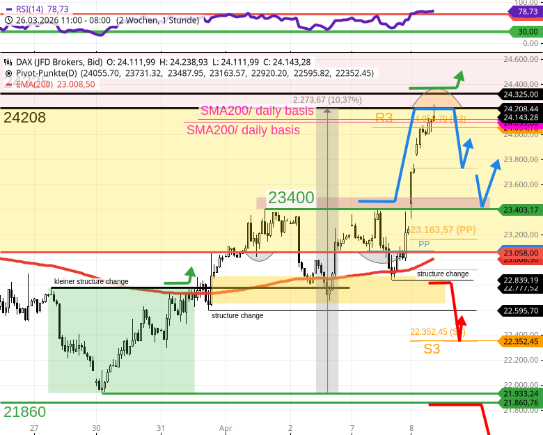 DAX - Tagesausblick: DAX mit +10% zum Tief vom 30.3.26 (+5% über Nacht)