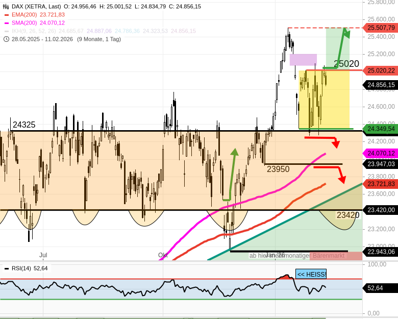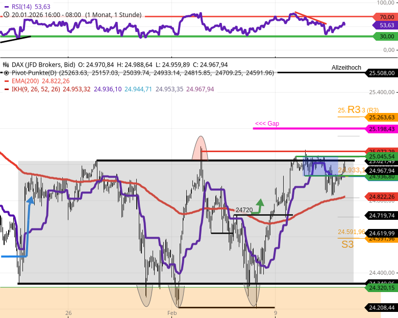 - DAX - Das war gestern ein Oszillieren unter einer Entscheidungsmarke 25020.