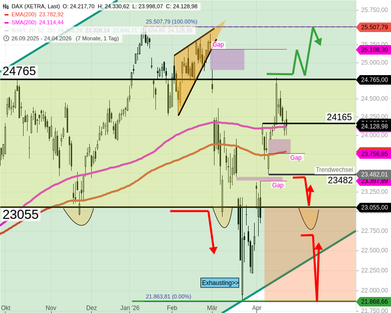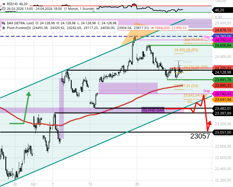 - 🔴 BÄRISCH: Unter 23482 würde der DAX signalisieren, dass es zu 23400 (island gap) und später zu ca. 23050 abwärts geht.