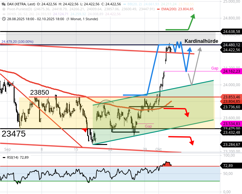 - 🔴 Eine DAX Chartbildeintrübung ginge mit 23850-x sowie 23735-x einher.