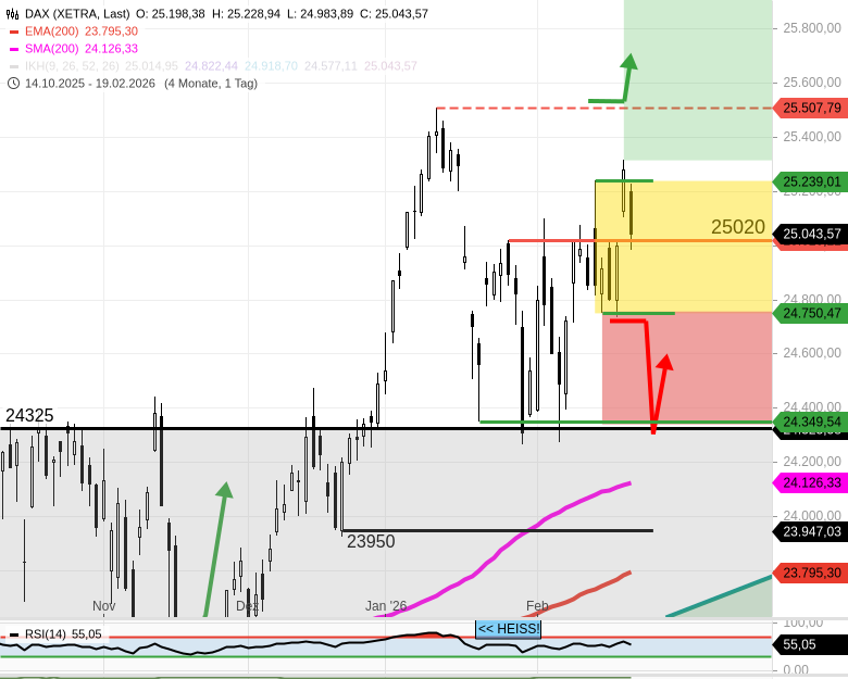 DAX - Tagesausblick: Pullback zu 25020 wenig überraschend. Keine Veränderung der Lage!