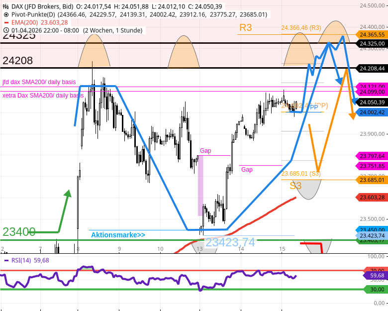 -Mini- Pullbacks führen den DAX herunter bis 24002/24000 (PP & runder Tausender).