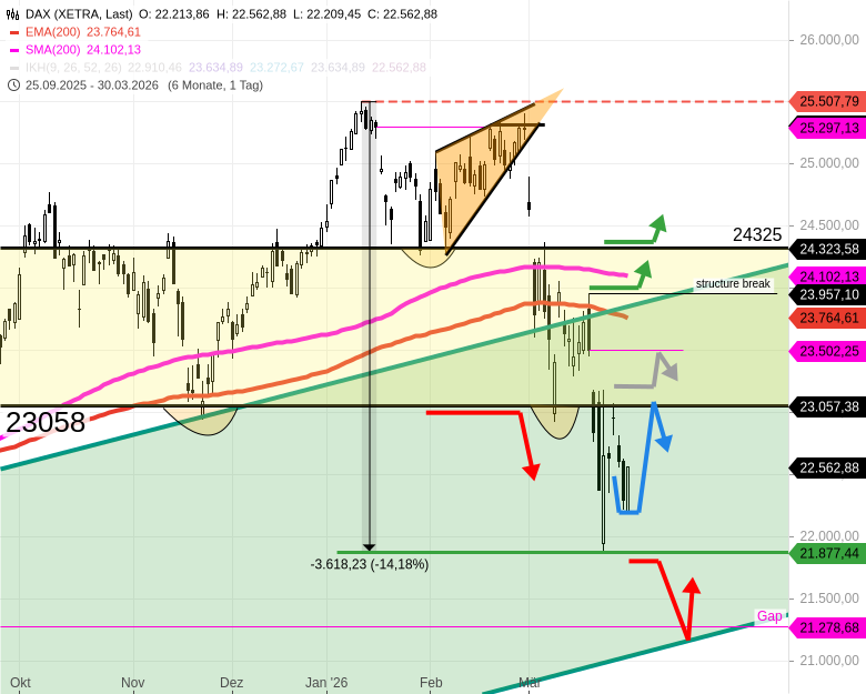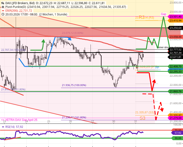 - 🔴 Unter 22295 ginge es schon wieder in labile Zustände hinein und somit abwärts bis 21935/21850.