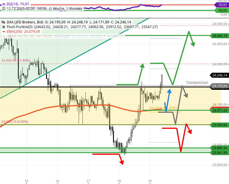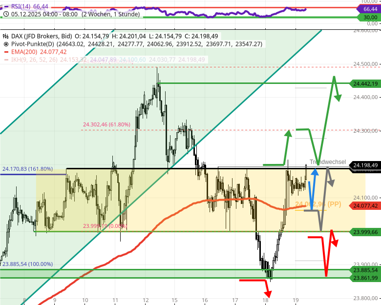 Unter 24200 ist ein Pullback bis 24070/24065 machbar, was dann eine kleine Kaufchance darstellt.