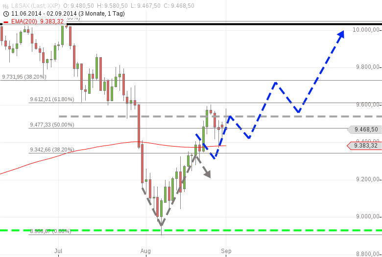 Seit 6 Handelstagen hängt der DAX unterhalb des Widerstands bei 9.600 Punkten fest.