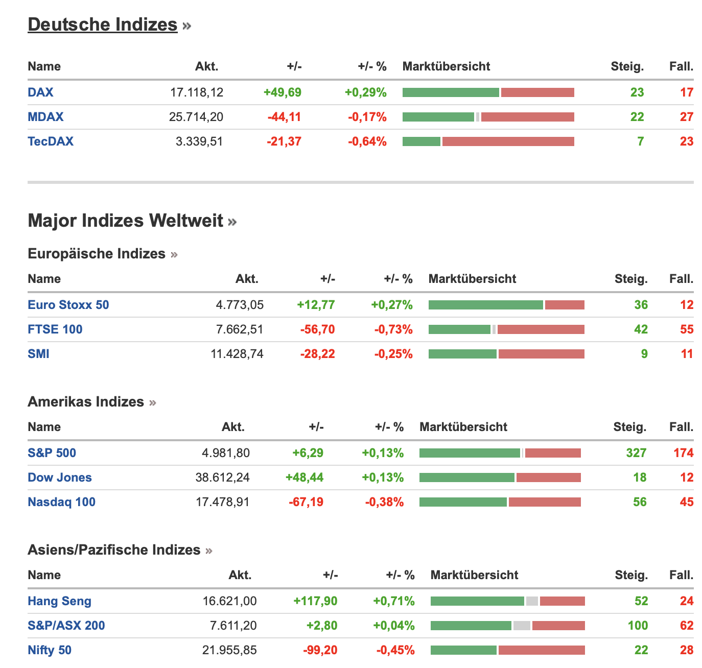 Per Schlusskurs wurde damit das Minus zwar nicht aufgeholt, doch nachbörslich dann übersprungen. Die offiziellen Handelszeiten der Börsen sind hier international zusammengefasst: